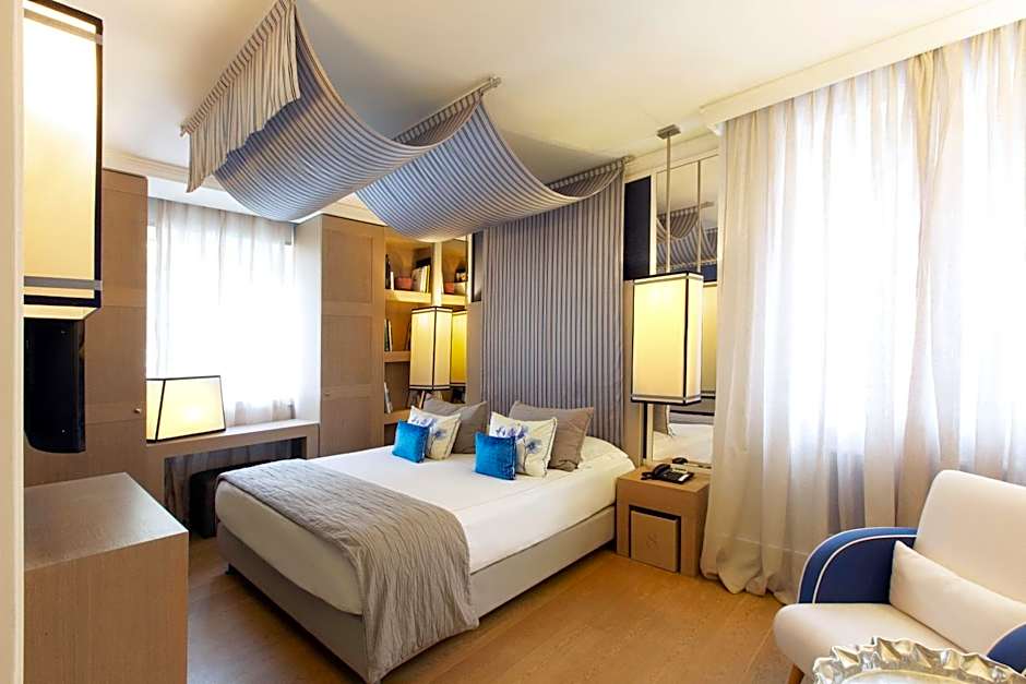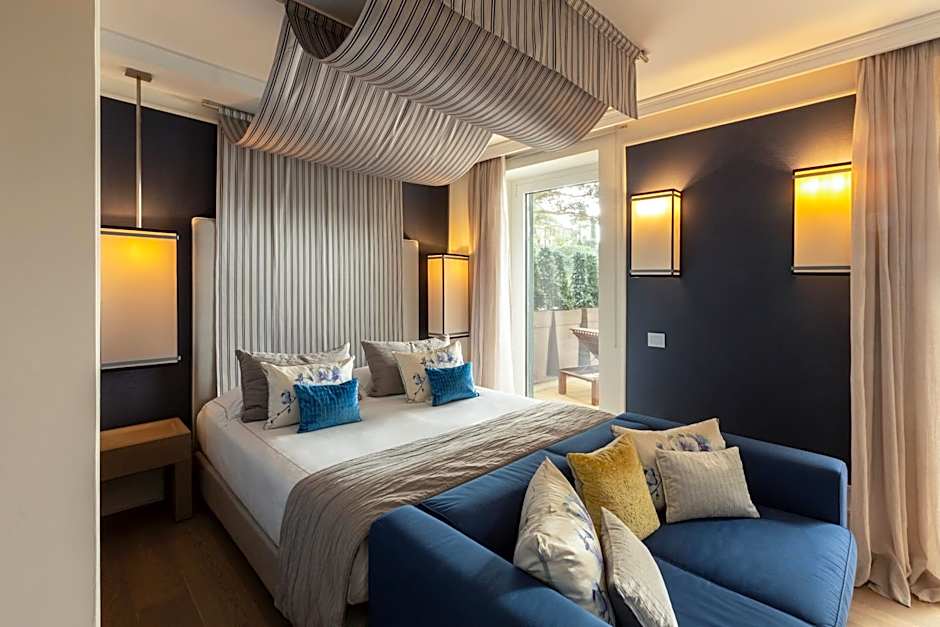 Elegant room with spa bath, Bang & Olufsen TV and terrace overlooking the sea.